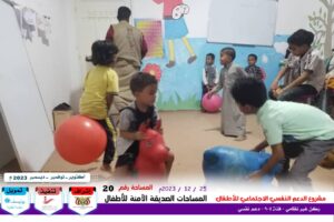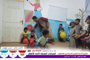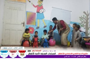 وتمت مساعدة المساحة في تنفيذ هذا النشاط بفضل الجهود المبذولة من قبل المنفذ الميسر، أيمن أحمد سالم جميل. وقد قام الميسر بتوجيه وإرشاد الأطفال في النشاط النفسي، وضمان أن يشعروا بالراحة والسعادة أثناء مشاركتهم فيه.