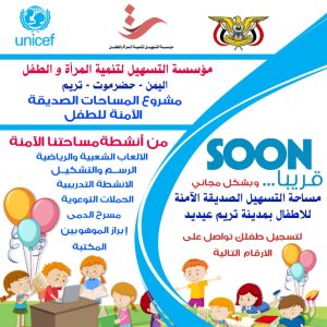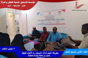 عقد مساء يوم الثلاثاء الموافق 9 نوفمبر 2022م بمؤسسة التسهيل لتنمية المرأة والطفل اللقاء الثاني لفريق العمل بالمساحات الصديقة الآمنه للطفل ، الذي يأتي بتمويل من منظمة يونيسف للطفولة وذلك لاطلاعهم على اخر المستجدات بخصوص تنفيذ المشروع و توقيع المؤسسة على اتفاقية العمل لتنفيذ مشروع الدعم النفسي والاجتماعي مع مكتب وزارة الشئون الاجتماعية والعمل بوادي وصحراء حضرموت المتمثلة في الشراكة في تنفيذ انشطة وفعاليات وإدارة مساحة صديقة آمنة للأطفال بمدينة تريم ، الممولة من منظمة اليونيسيف للطفولة.